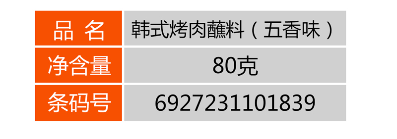 > 燒烤系列 > 韓式烤肉蘸料(五香味)